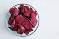 شرائح البنجر المجفف تحافظ على لونه الغني ونكهته الحلوة ومكوناته الغذائية بدون أي إضافات أو مواد حافظة. مثالية كوجبة خفيفة صحية، أو لإضافة لمسة مميزة في التقديمات، أو حتى لتزيين الأطباق.