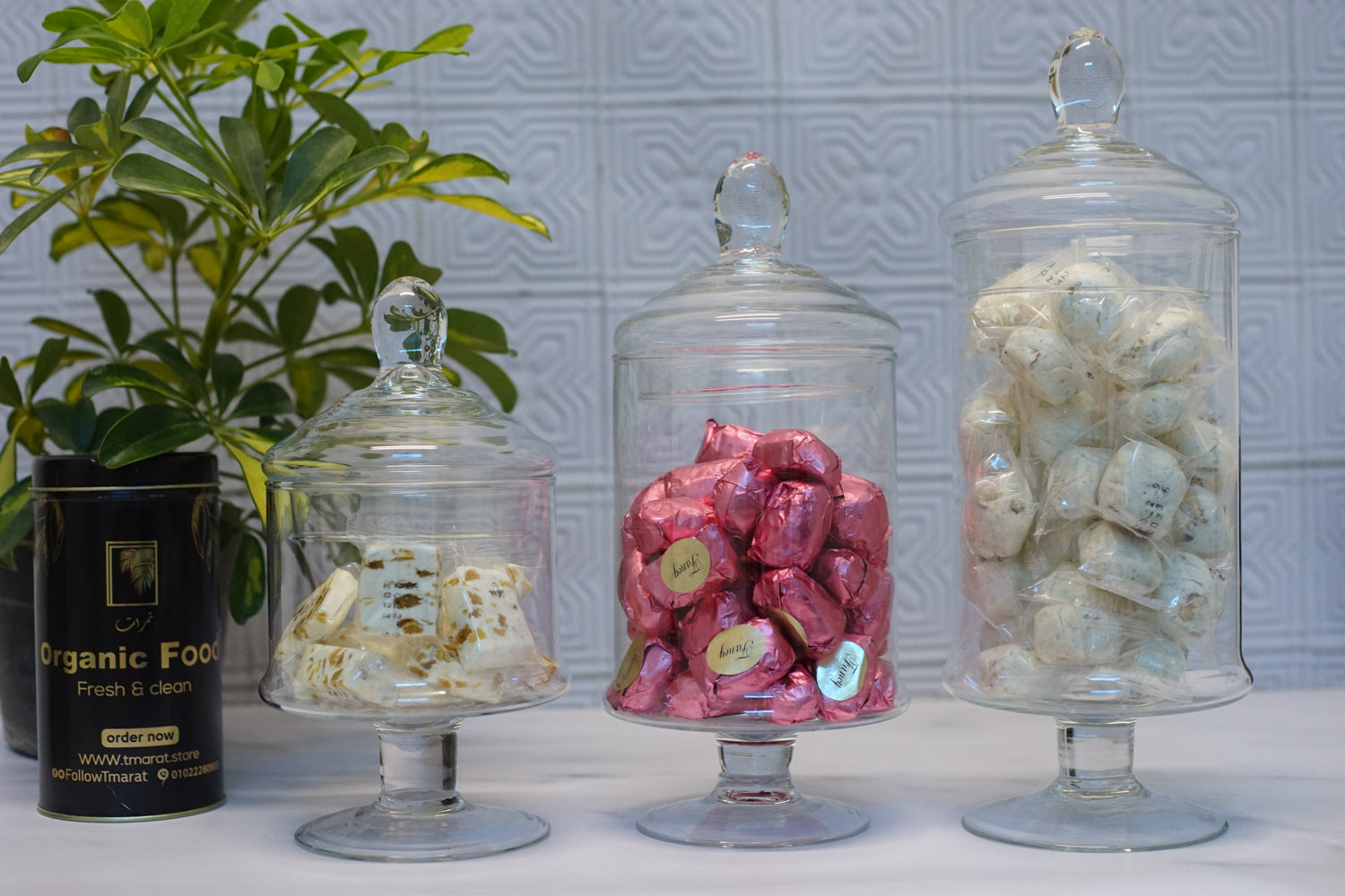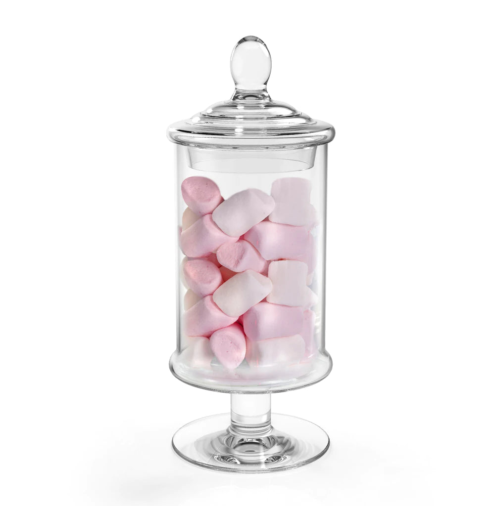 بونبونيرة قيمة بتصميم عصري أنيق من الزجاج المقوى شفاف اللون مع أقدام سفلية وغطاء مميز
