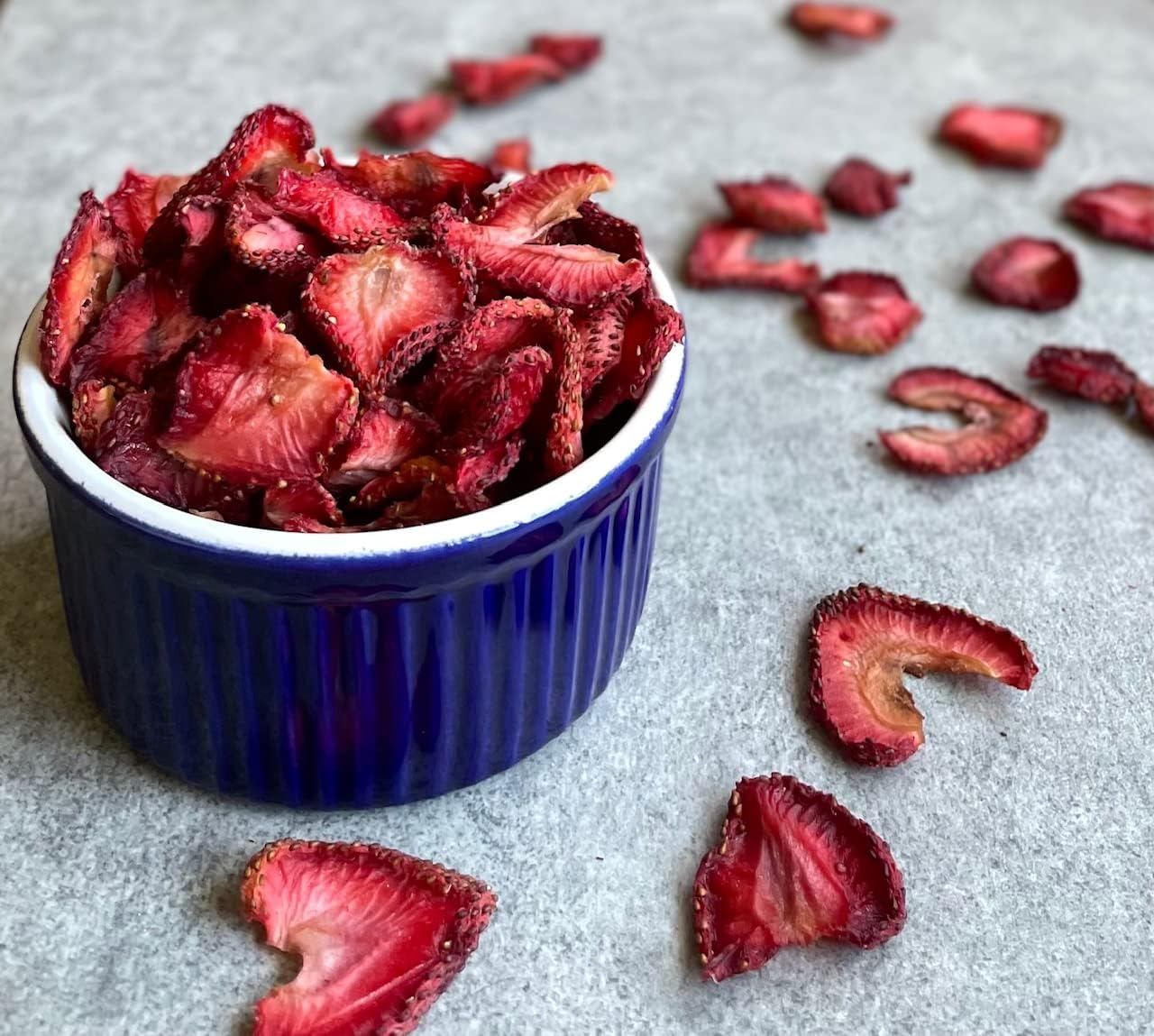 شرائح الفراولة المجففة دي خيار مثالي كـ سناك صحي، أو إضافة مميزة للافطار، الشوفان، الزبادي، الجرانولا، وتحلية الحلويات.