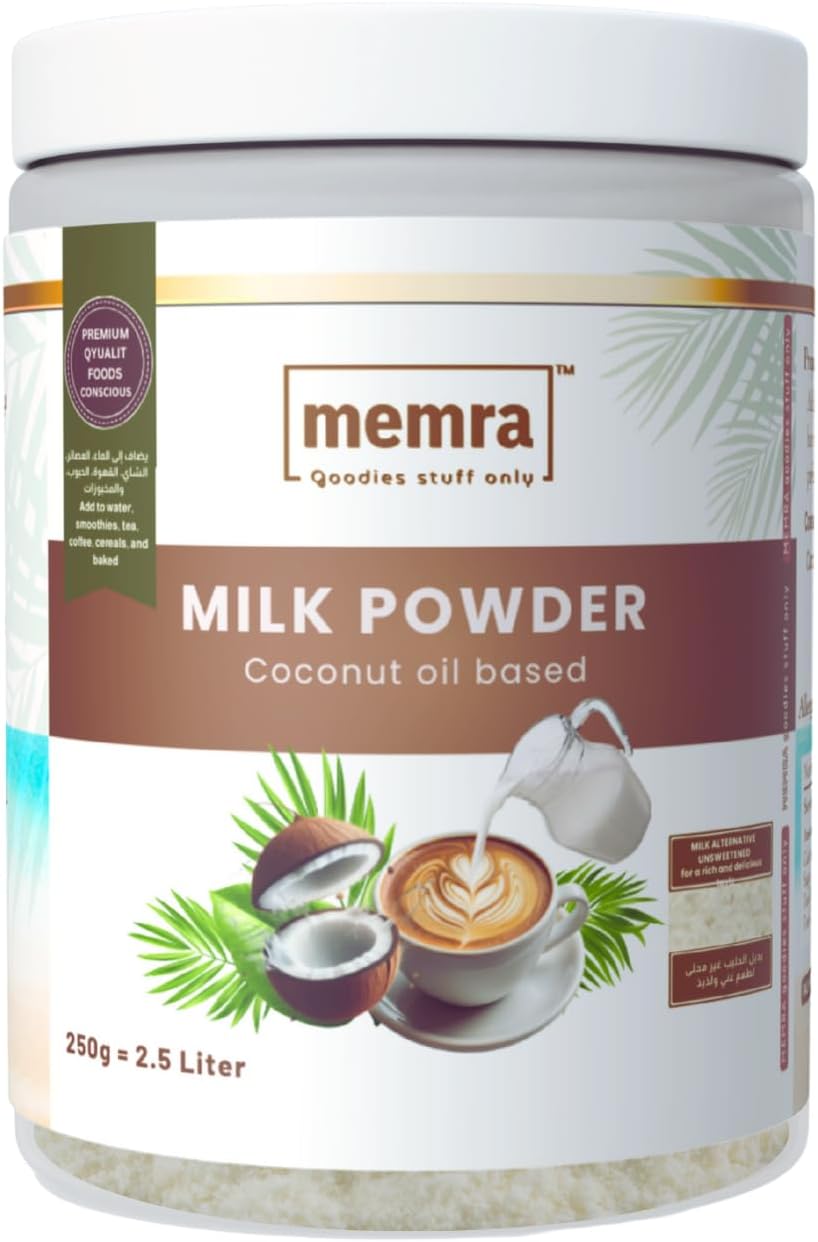 بودرة ناعمة غنية بطعم جوز الهند الطبيعي، سهلة التحضير وتضيف قوام كريمي ونكهة لذيذة للوصفات والمشروبات. مثالية للطهي، الحلويات، والمشروبات الساخنة أو الباردة خالي من الجولتين