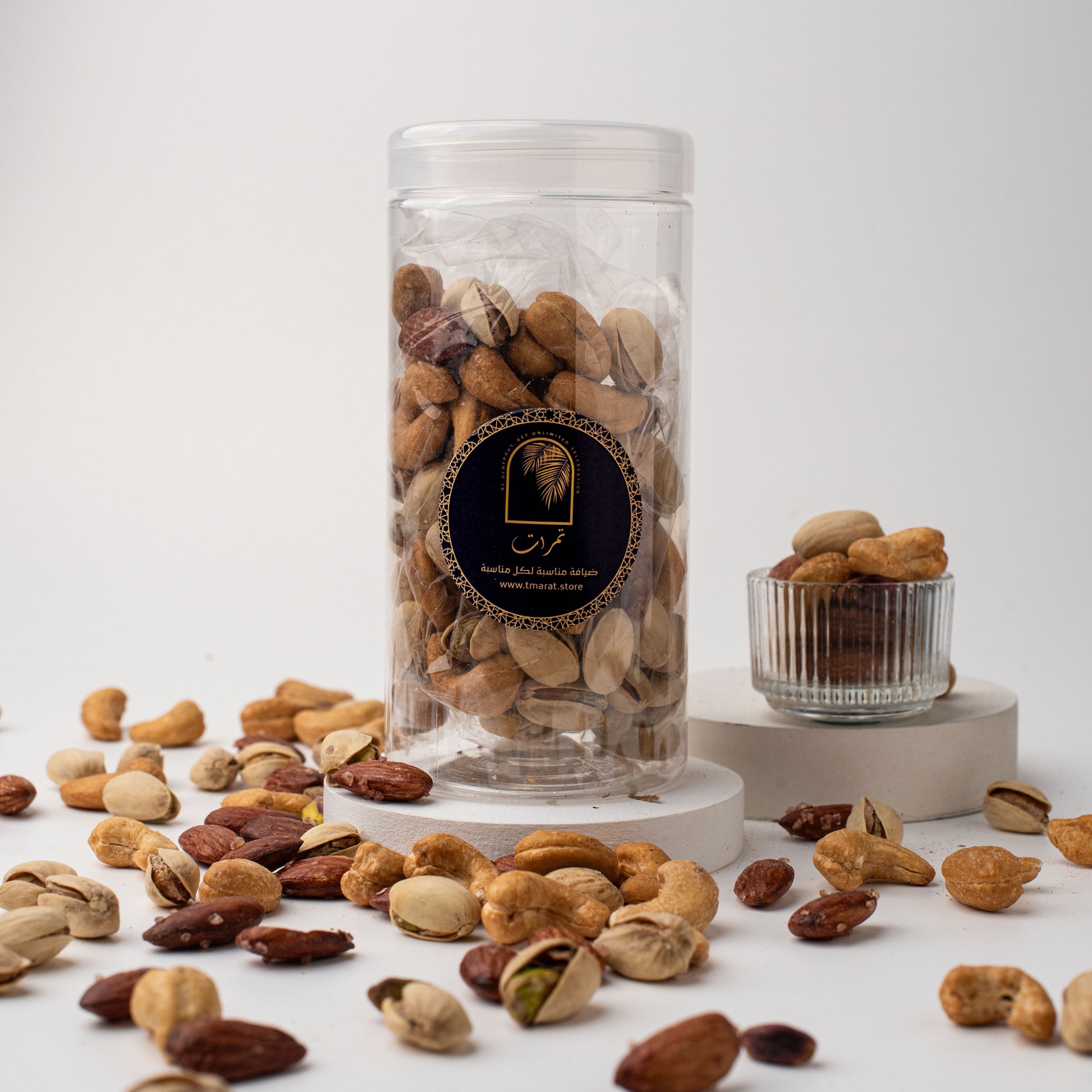 Looking for premium mixed nuts that are slightly salted? this is for you! An exciting blend of cashews, almonds, and pistachio . These premium toasted nuts do not contain walnuts and hazelnuts. To ensure the freshness you can savor, Tmarat roasts the nuts daily for you.