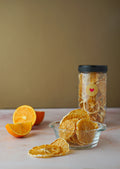 يعد البرتقال المجفف وجبة منعشة غنية بالفيتامينات التي بدورها تقوي جهاز المناعة، تقلل نسب الكوليسترول في الجسم، تخفف نسبة السكر في الدم كما تزيد من نضارة البشرة..