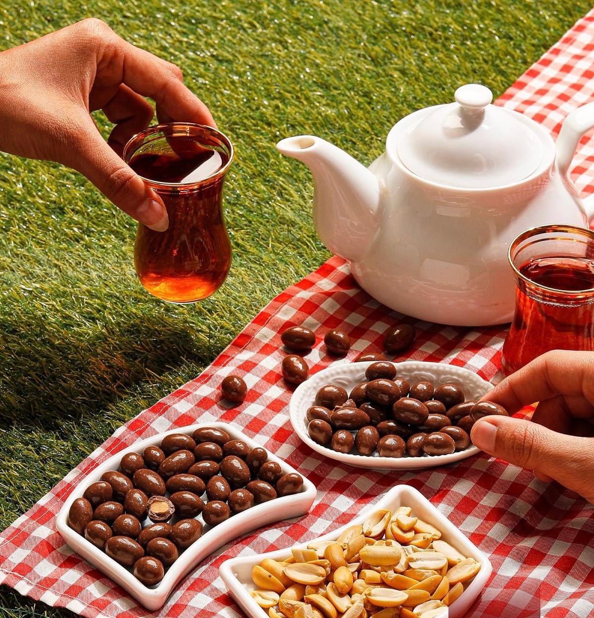 حبات من الفول السوداني الكامل مغطسة في شوكولاتة بلجيكية فاخرة تصلك في عبوات مميزة من تمرات👑