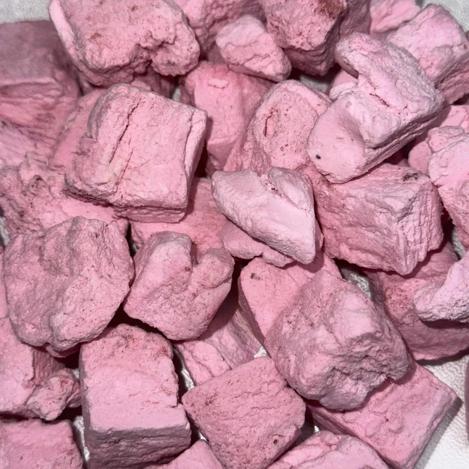 مكعبات آيس كريم فراولة مجففة بالتبريد 🍦❄️، مقرمشة من بره وتذوب في الفم بنكهة فراولة طبيعية ومنعشة!