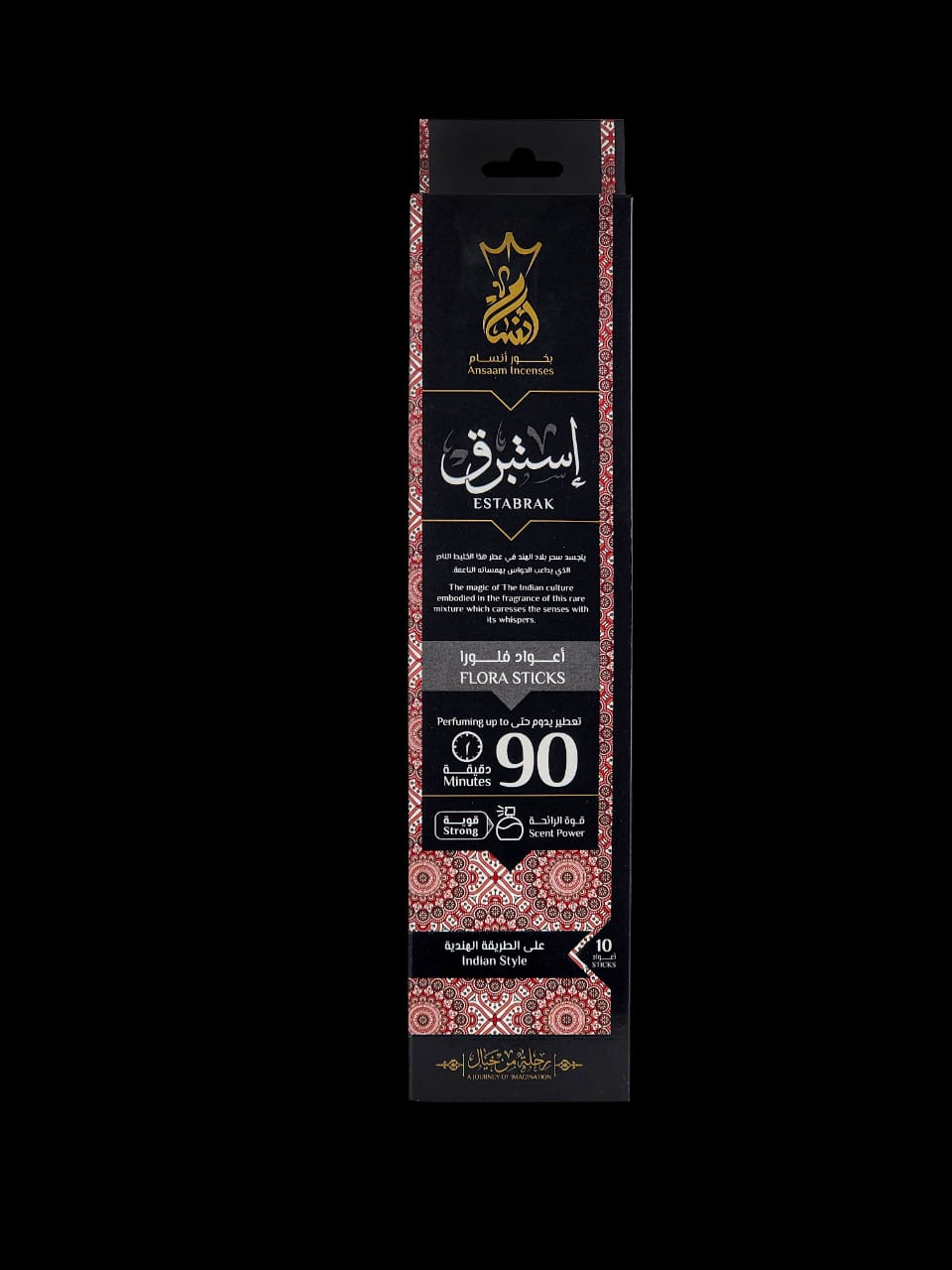 Istabraq Incense delivers luxurious, long-lasting oriental fragrance with rich oud and blooming flowers. Available in 90 minutes and luxury Flora stick formats, it is made from high-quality natural ingredients to create a warm, sophisticated, and inviting atmosphere in your home